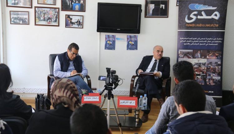 أكد الدكتور المحاضر “محمد الشرقاوي”، أستاذ تسوية النزاعات بجامعة جورج ميسن بواشنطن، وعضو لجنة الخبراء في الأمم المتحدة سابقا في نيويورك، في بداية مداخلته على أننا نعيش على مستوى العالم في مفترق طرق ومرحلة انتقالية تتجلى في العديد من المؤشرات، من بينها: “وصول ترامب إلى رئاسة الولايات المتحدة الأمريكية، الاتحاد الأوروبي بدون بريطانيا، الصراع في سوريا…”، ونشاط مثل هذا لمركز مدى يجعلنا نفكر في هذه الإشكاليات، جدير بأن يشجع الشباب على خوض غمار البحث والتشكيك، خصوصا أننا في مرحلة تعرف تساؤلات إقليمية ويجب أن نبحث لها عن أجوبة إقليمية متجاوزين مسألة “مركزية المعرفة”.