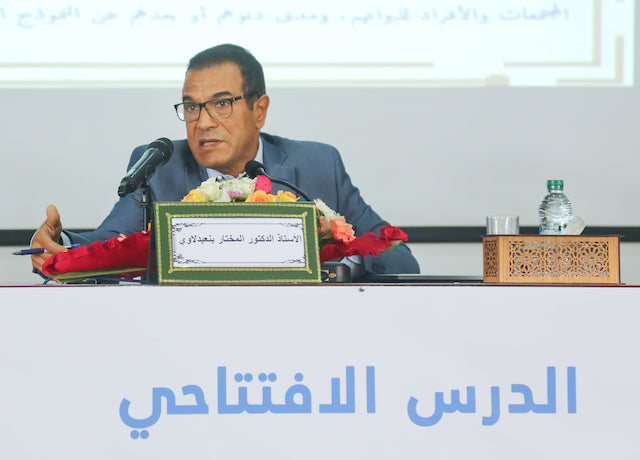 وخلال هذا الدرس، سلط الدكتور المختار بنعبدلاوي الضوء على مفهوم الكرامة عبر حفريات في اللفظ والدلالات، وتشابكات هذه الدلالات مع الدين والمجتمع والتاريخ، مركزا على تطور المفهوم انطلاقا من تعبيراته في الشعر الجاهلي وصولا إلى المرحلة الإسلامية، ثم الأشكال والدلالات التي أصبح يحيل عليها في العصور الحديثة وصولا إلى تصدير الإعلان العالمي لحقوق الإنسان.