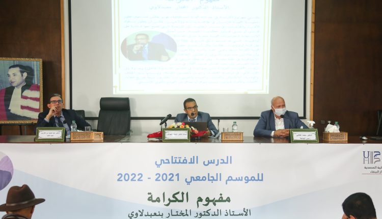 ألقى أستاذ الفلسفة بجامعة الحسن الثاني، الدكتور المختار بنعبدلاوي، الدرس الافتتاحي لكلية الآداب والعلوم الإنسانية –المحمدية، يوم الثلاثاء 27 أكتوبر 2021، حول “مفهوم الكرامة”، وهو الدرس الذي تميز بحضور السيد رئيس جامعة الحسن الثاني الدكتور محمد الطالبي، وبإدارة وتسيير الدكتور عبدالحميد ابن الفاروق عميد كلية الآداب والعلوم الإنسانية المحتضنة للدرس، وثلة من عمداء كليات تابعة لجامعة الحسن الثاني ومدراء المؤسسات التابعة لها ومؤسسات أخرى، وأساتذة بنفس الكلية وطالبات وطلبة.