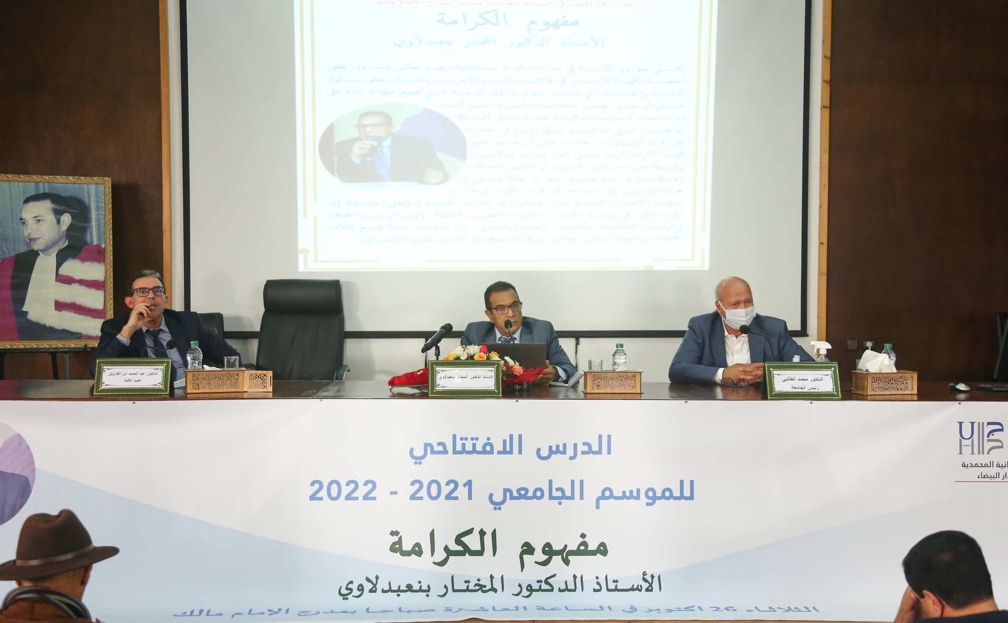 ألقى أستاذ الفلسفة بجامعة الحسن الثاني، الدكتور المختار بنعبدلاوي، الدرس الافتتاحي لكلية الآداب والعلوم الإنسانية –المحمدية، يوم الثلاثاء 27 أكتوبر 2021، حول “مفهوم الكرامة”، وهو الدرس الذي تميز بحضور السيد رئيس جامعة الحسن الثاني الدكتور محمد الطالبي، وبإدارة وتسيير الدكتور عبدالحميد ابن الفاروق عميد كلية الآداب والعلوم الإنسانية المحتضنة للدرس، وثلة من عمداء كليات تابعة لجامعة الحسن الثاني ومدراء المؤسسات التابعة لها ومؤسسات أخرى، وأساتذة بنفس الكلية وطالبات وطلبة.