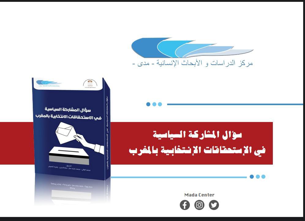 صدر عن مركز الدراسات و الأبحاث الانسانية – مدى- و مختبر الأبحاث القانونية و تحليل السياسات بمراكش كتاب جماعي بعنوان : سؤال المشاركة السياسية في الاستحقاقات الانتخابية بالمغرب. إذ تضمن هذا الكتاب مساهمات باحثين من مختلف الجامعات المغربية، وهي مساهمات علمية من تخصصات سوسيولوجية و قانونية وسياسية وتاريخية قدمت في يوم دراسي نظم يوم 20 أبريل 2021 بكلية العلوم القانونية و الاقتصادية و الاجتماعية بمراكش. وتوزعت مساهمات الباحثين في هذا الكتاب على اربعة محاور؛ وهي الثقة وجودة الانتخابات، وتعديل القوانين الانتخابية، والنخب و النوع الاجتماعي، و الثقافة السياسية.